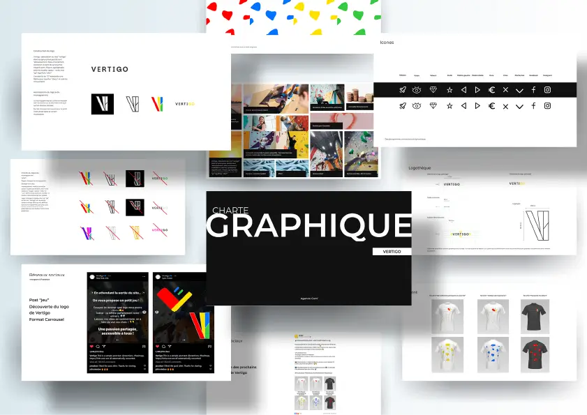 • Une charte graphique intégrant notamment les polices, couleurs sélectionnées & comprenant les mockups de tee-shirts pour différentes cibles.